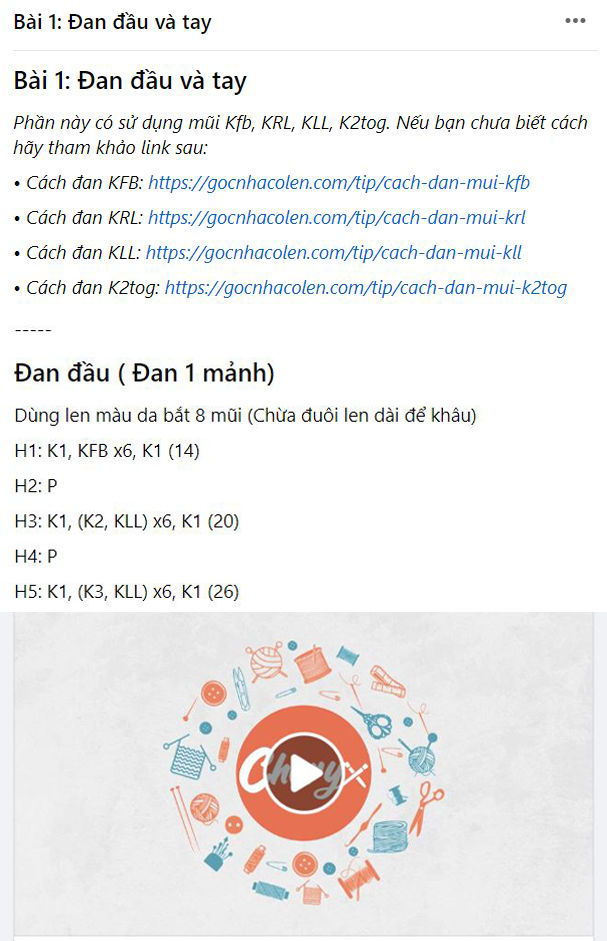 - Mình không làm file PDF! Công thức đan và cách khâu ráp được chia sẵn thành từng bài trong group lớp học để có thể chia sẻ chi tiết hơn, rõ ràng hơn.
